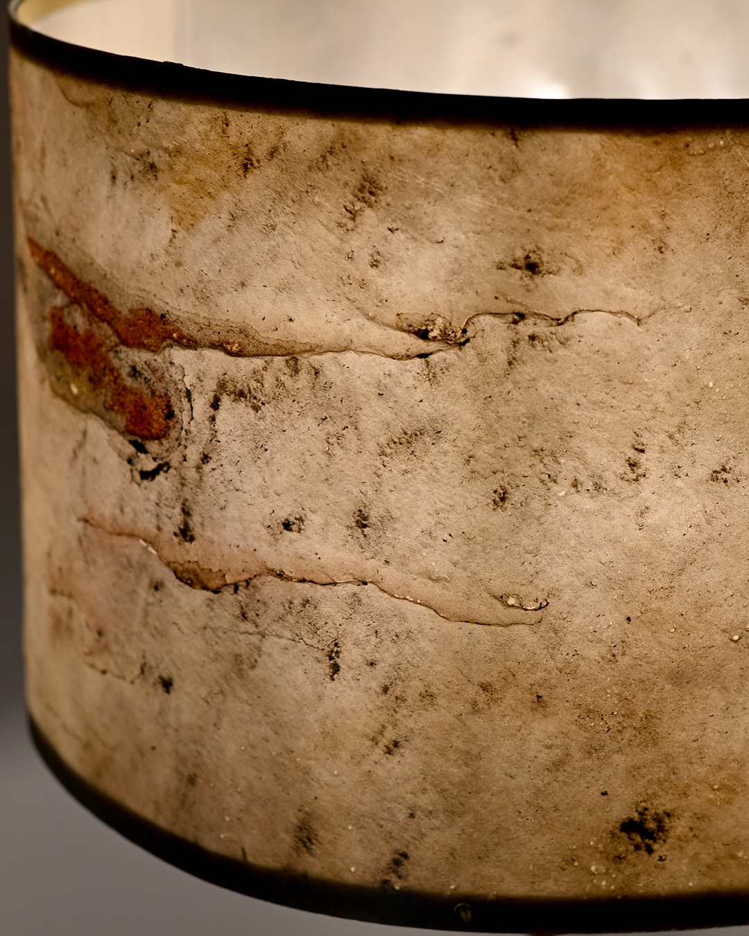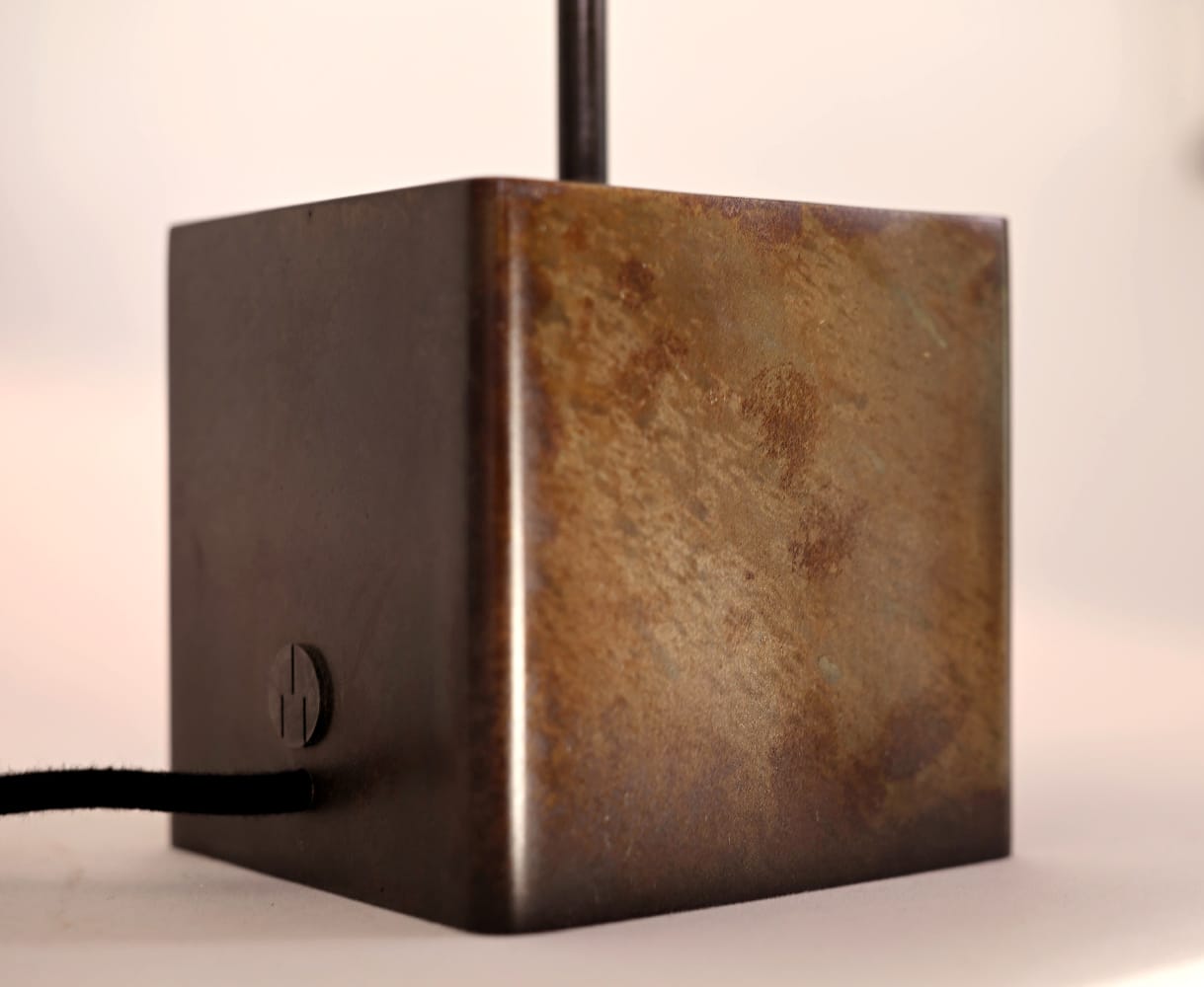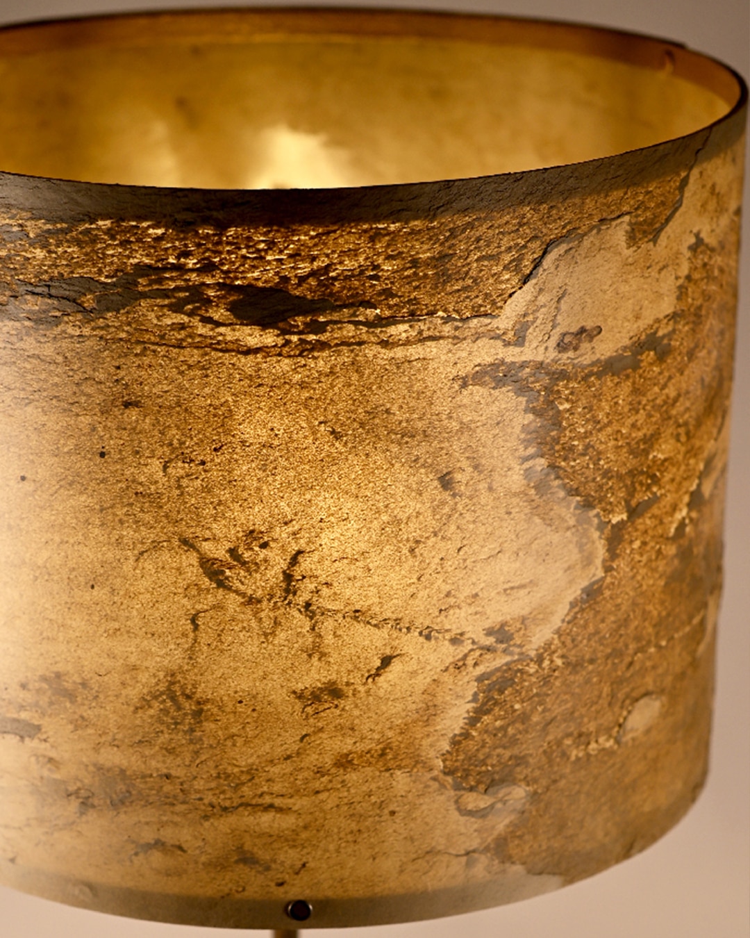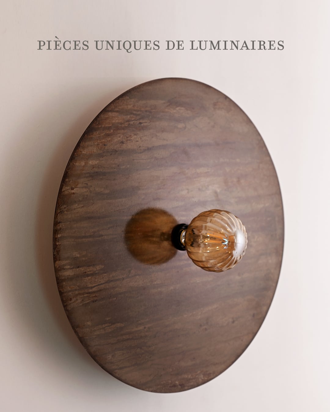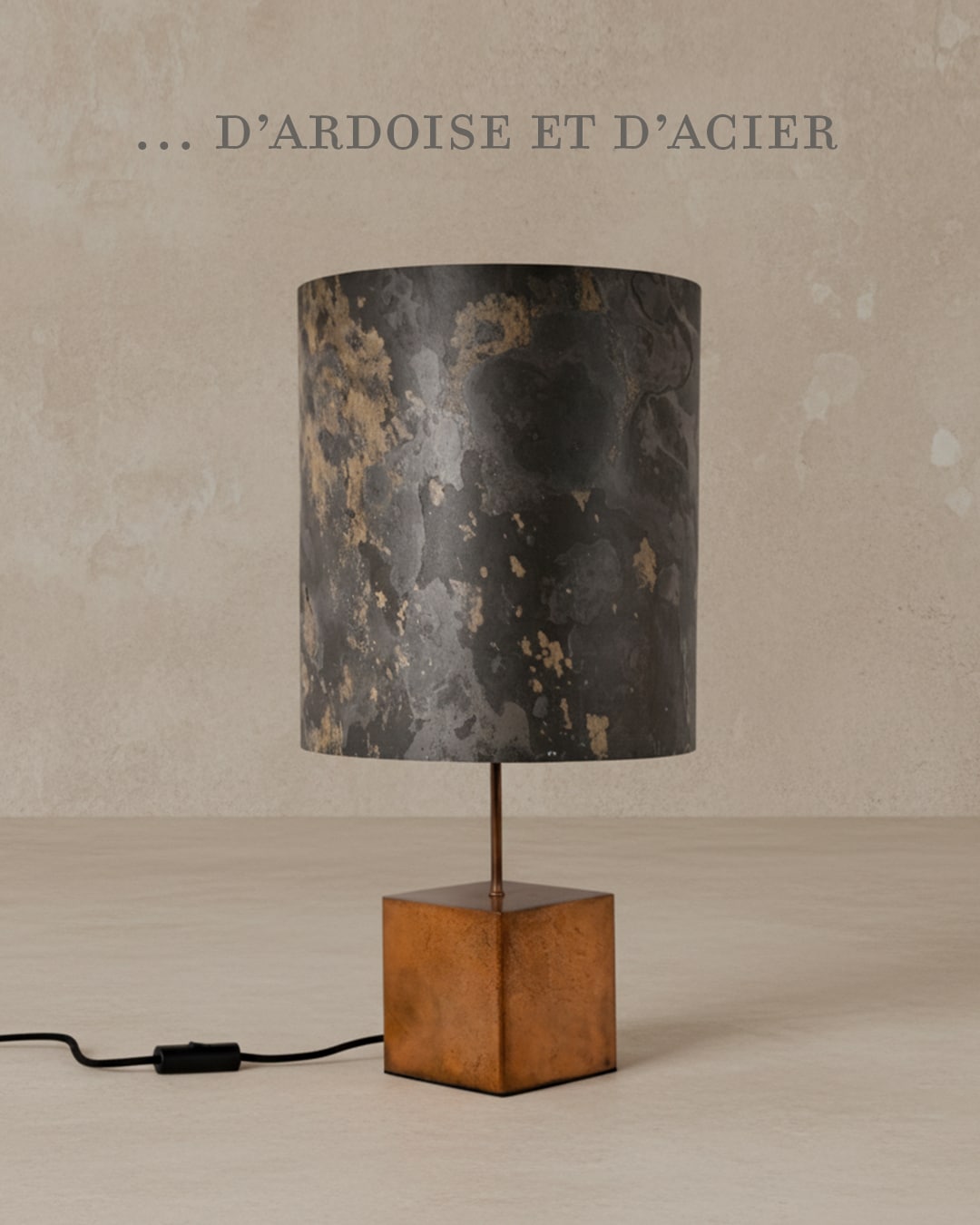 Nos techniques de patine et d'oxydation contrôlée donnent naissance à des finitions uniques : nuances de rouille, tons cuivrés chaleureux, patines noires profondes, ou encore les subtils verts de gris. Aucune pièce n'est identique, chaque luminaire porte en lui l'empreinte de sa création.