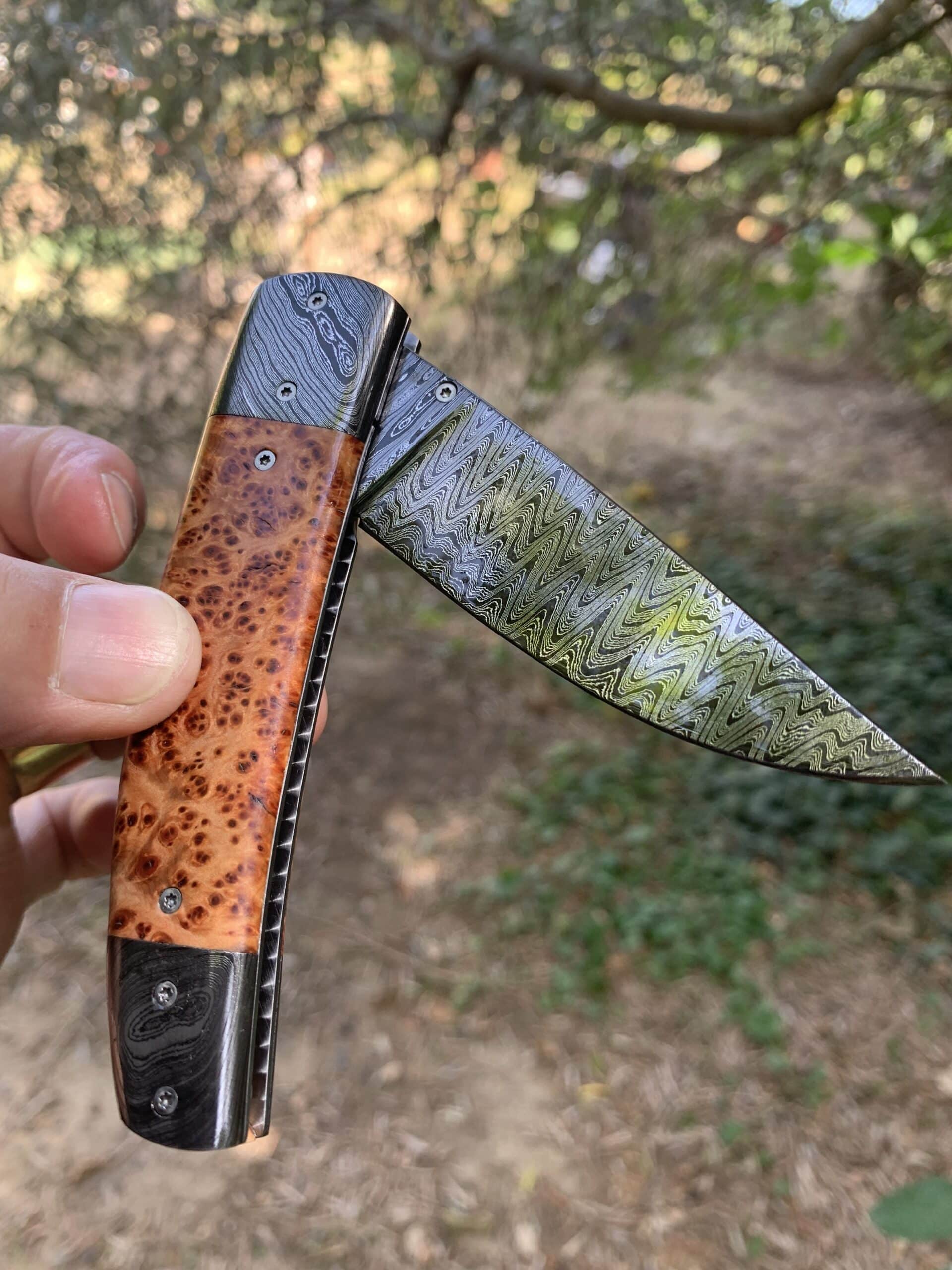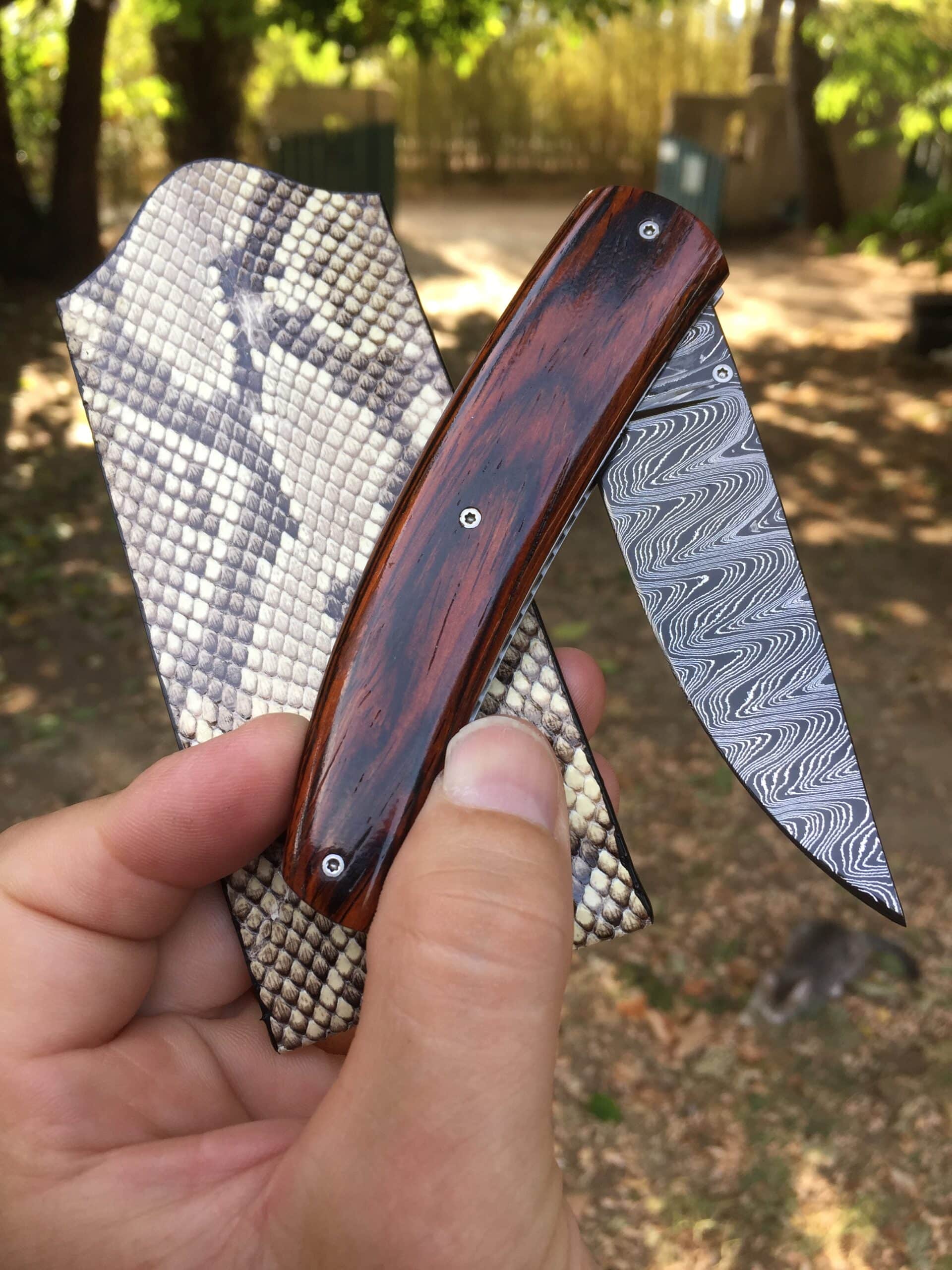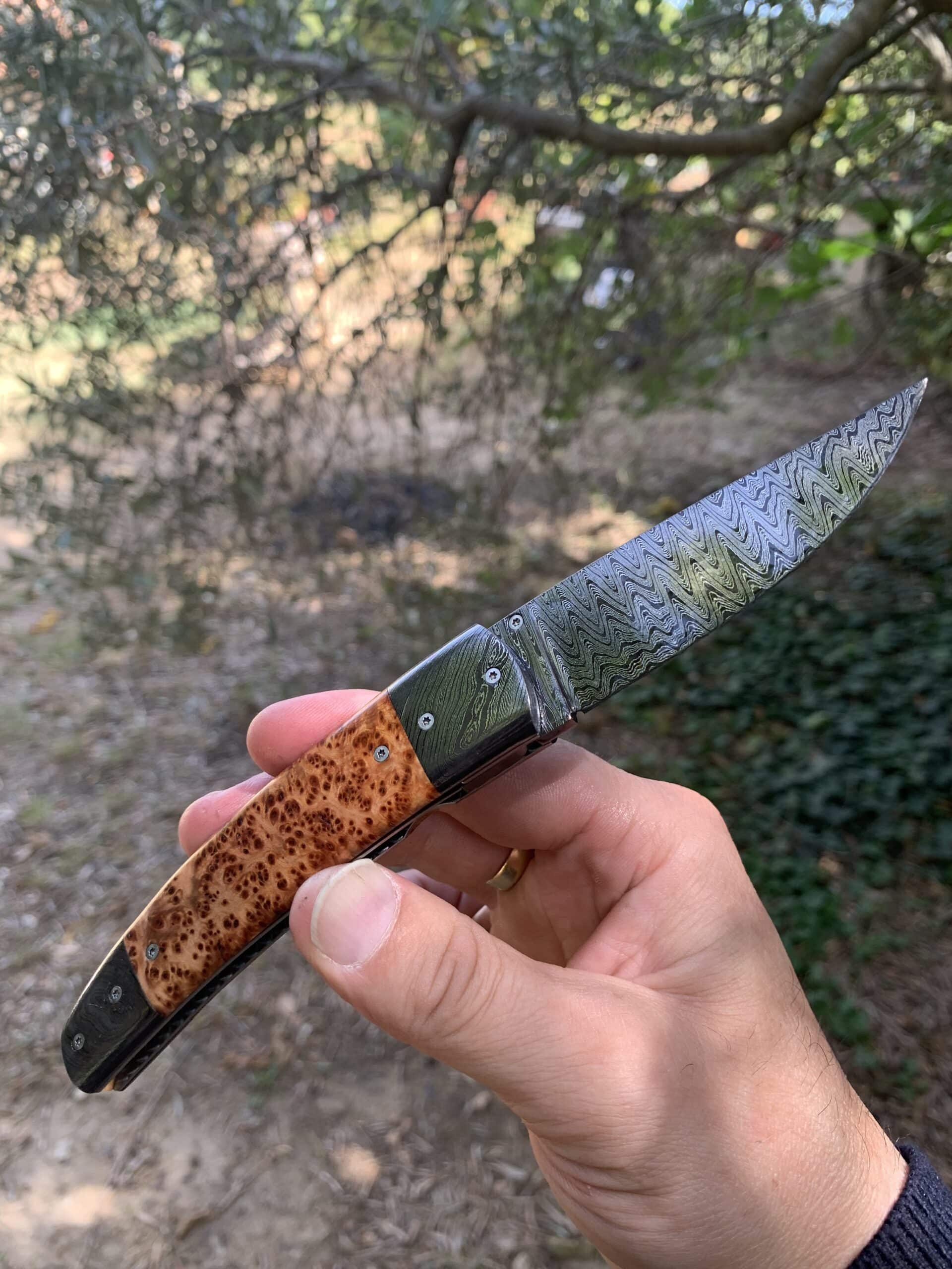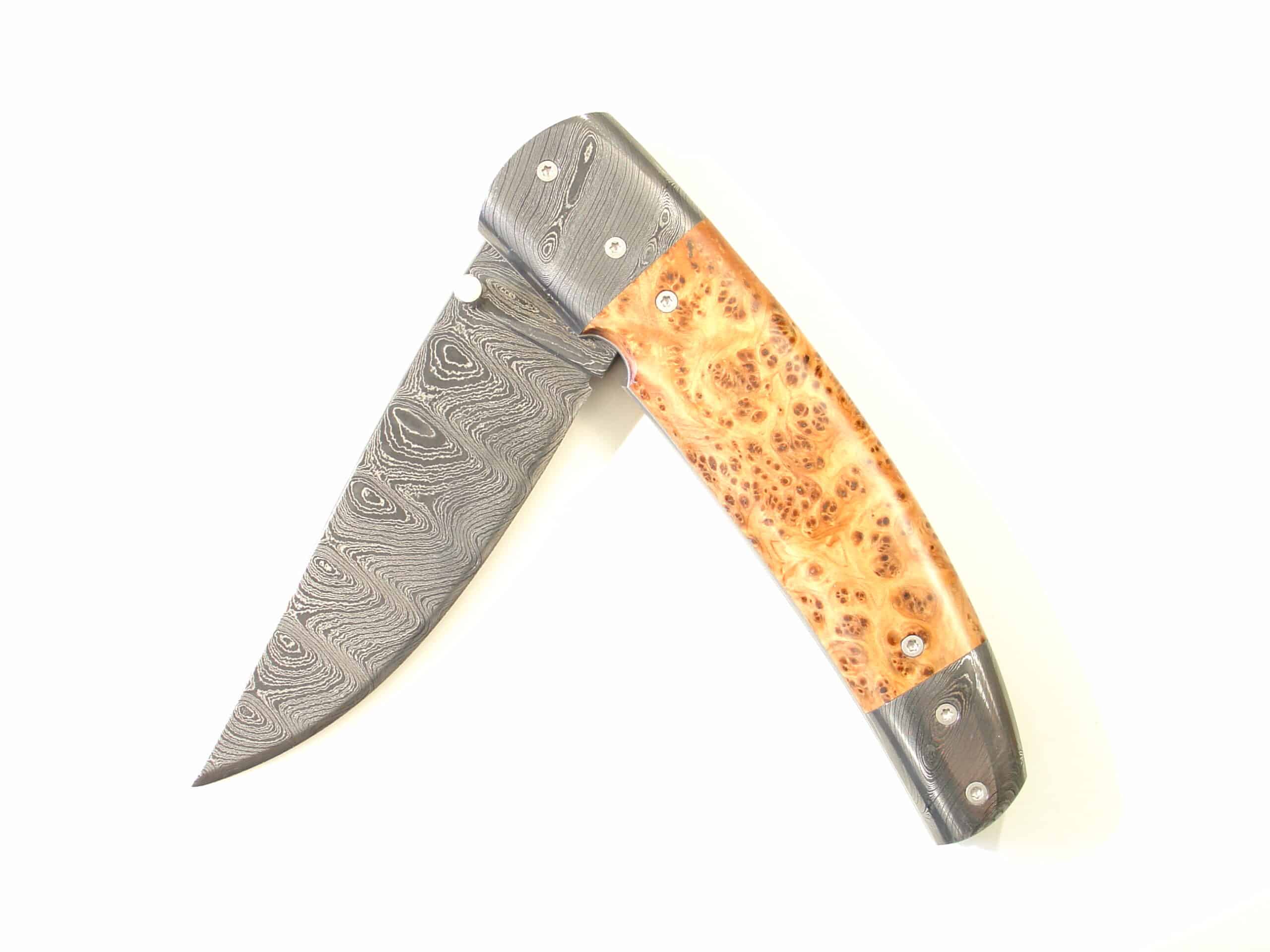 Sa passion pour la coutellerie d'art l'a également conduit à créer des couteaux dotés de manches en bois précieux et de lames en acier Damas, alliant esthétisme et fonctionnalité.