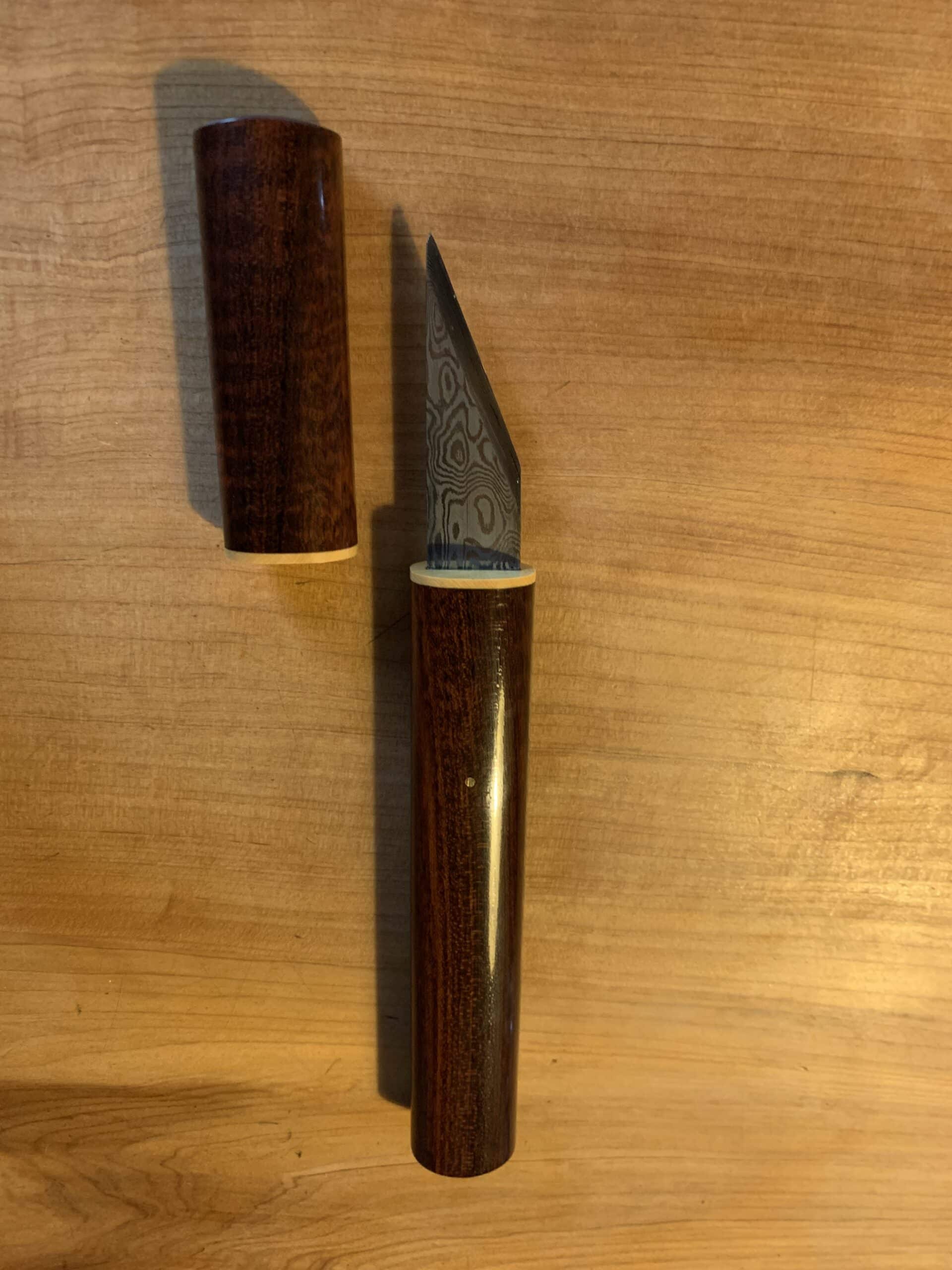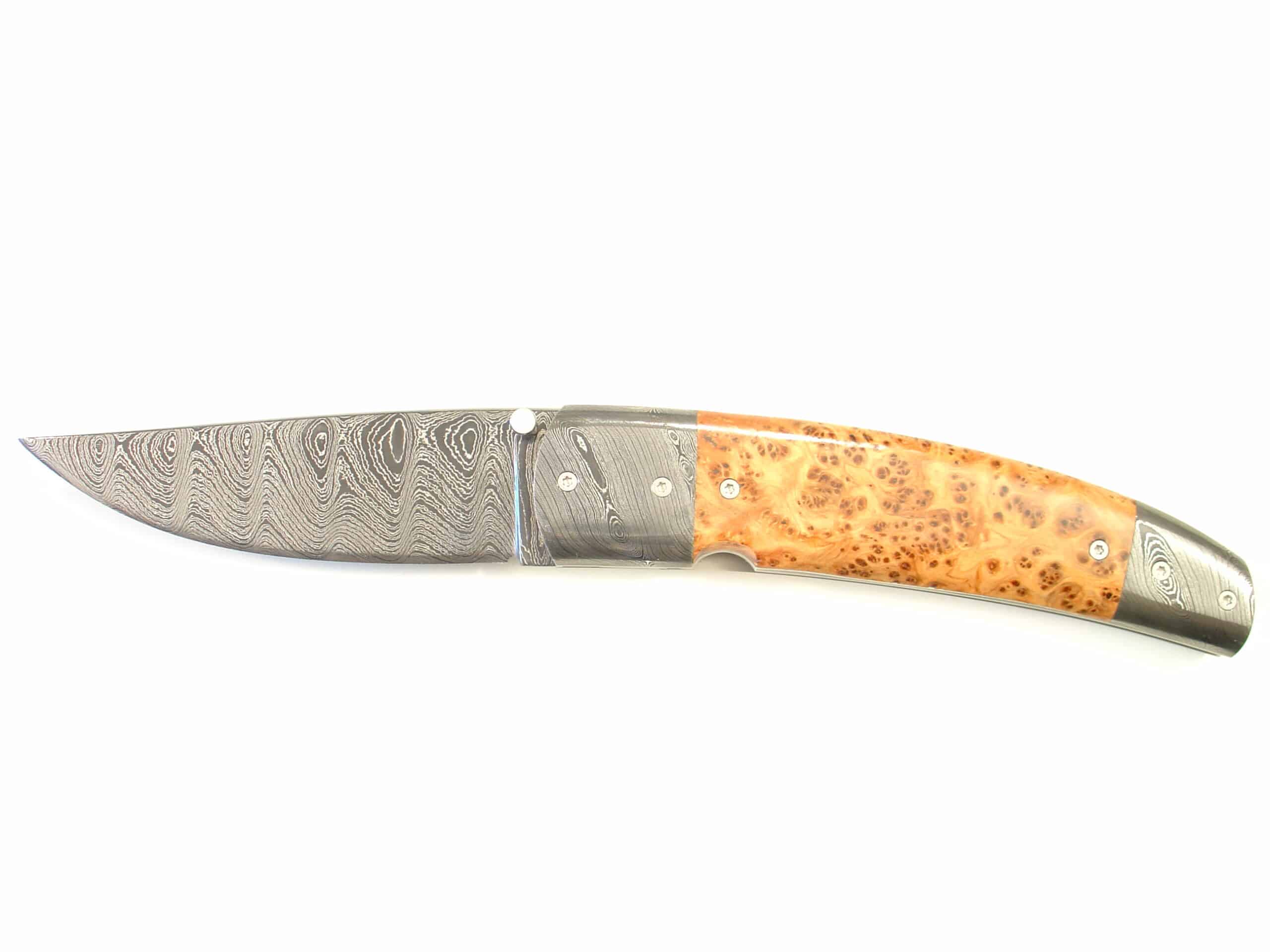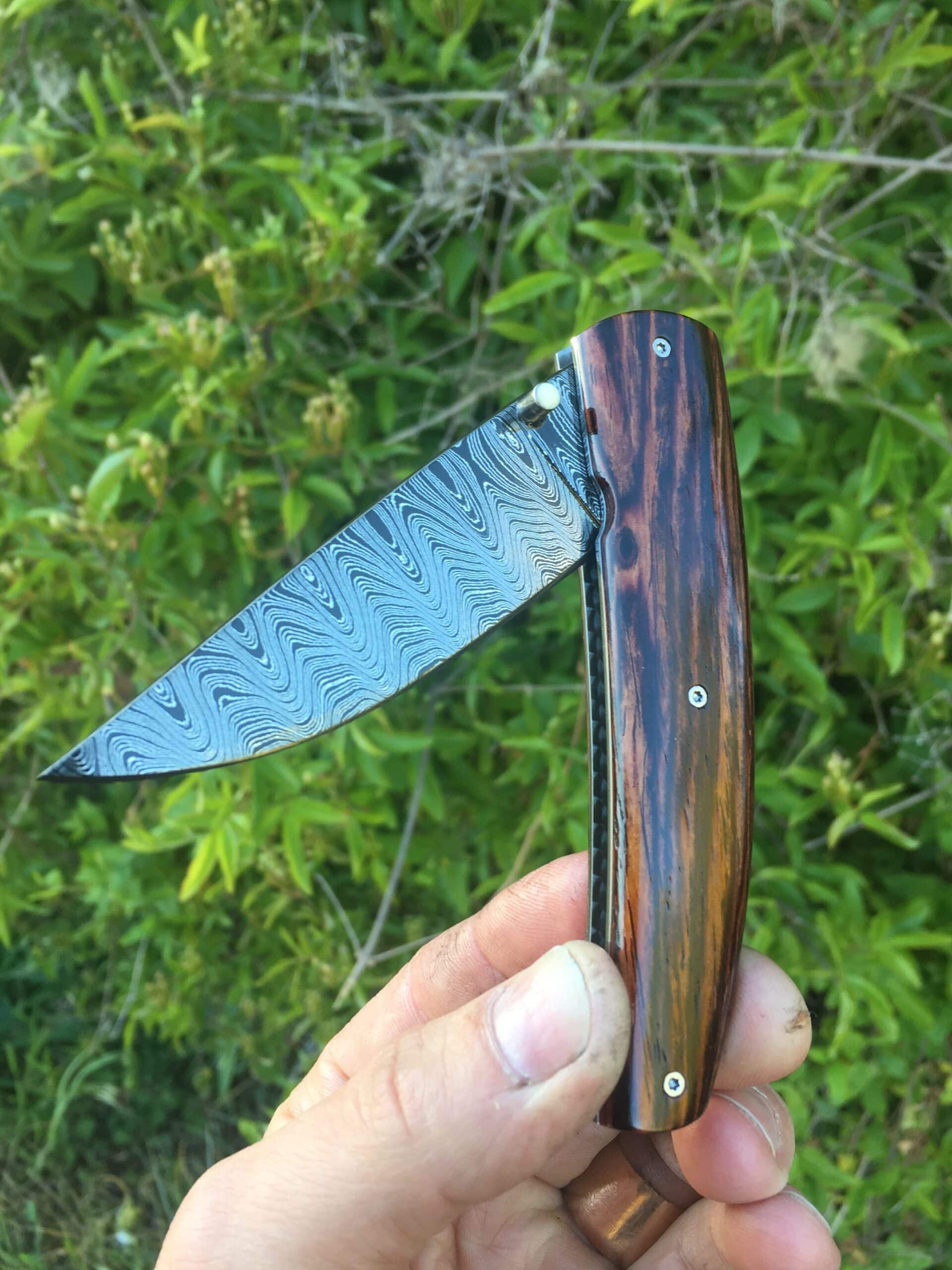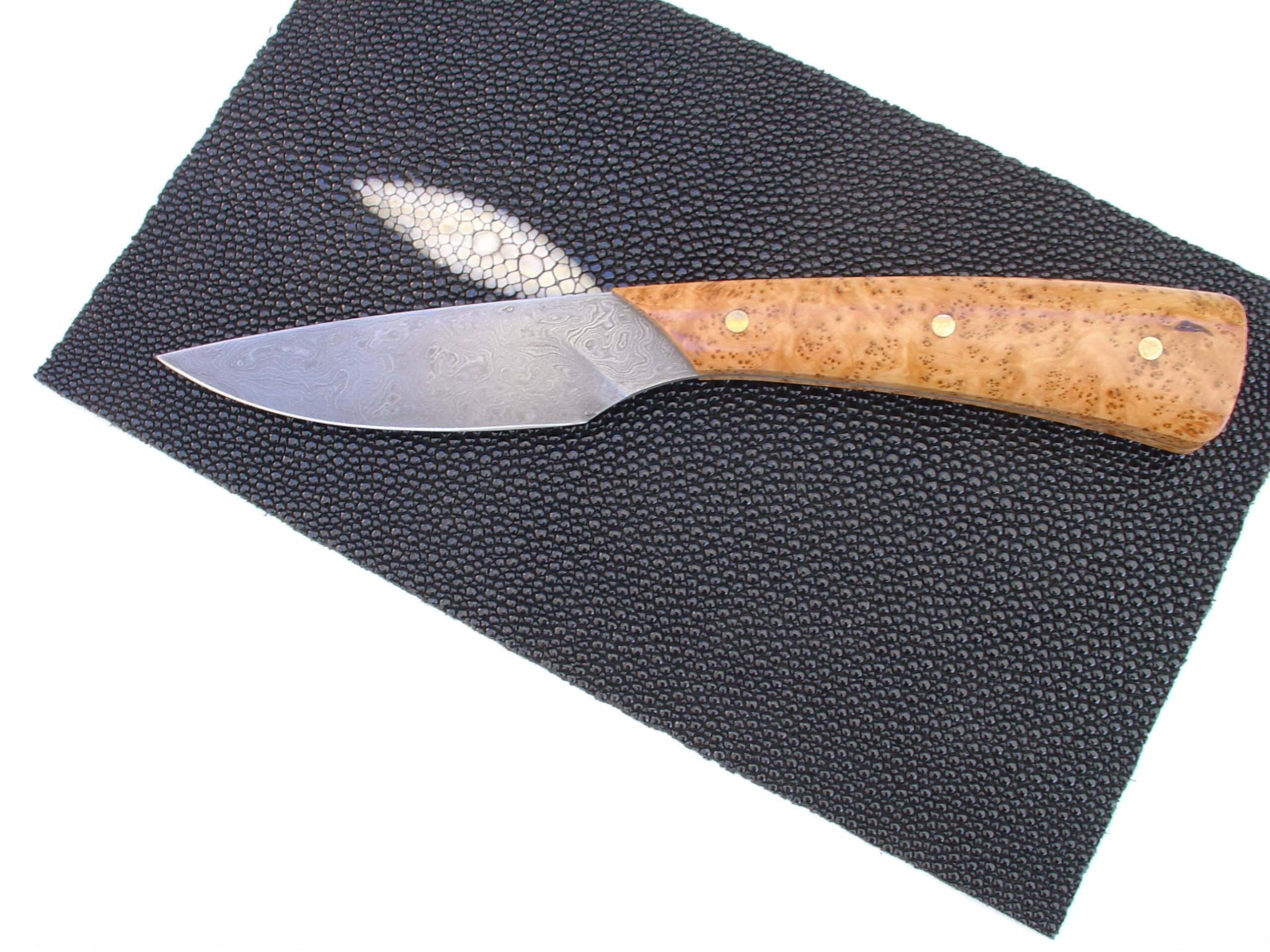 Sa passion pour la coutellerie d'art l'a également conduit à créer des couteaux dotés de manches en bois précieux et de lames en acier Damas, alliant esthétisme et fonctionnalité.