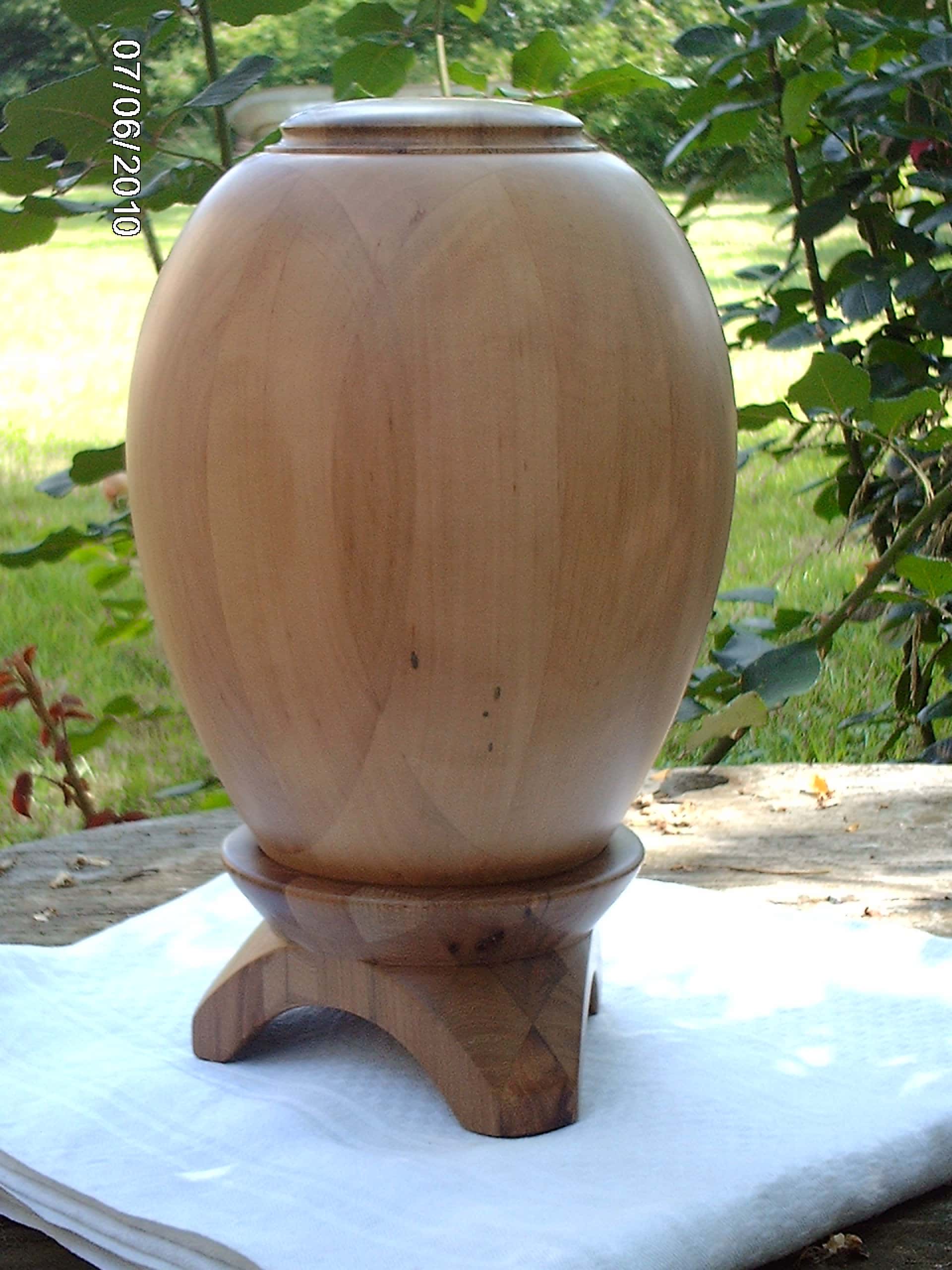 2. Réservoir ovoïde en forme d' amphore avec couvercle. Piètement tripode collé au corps