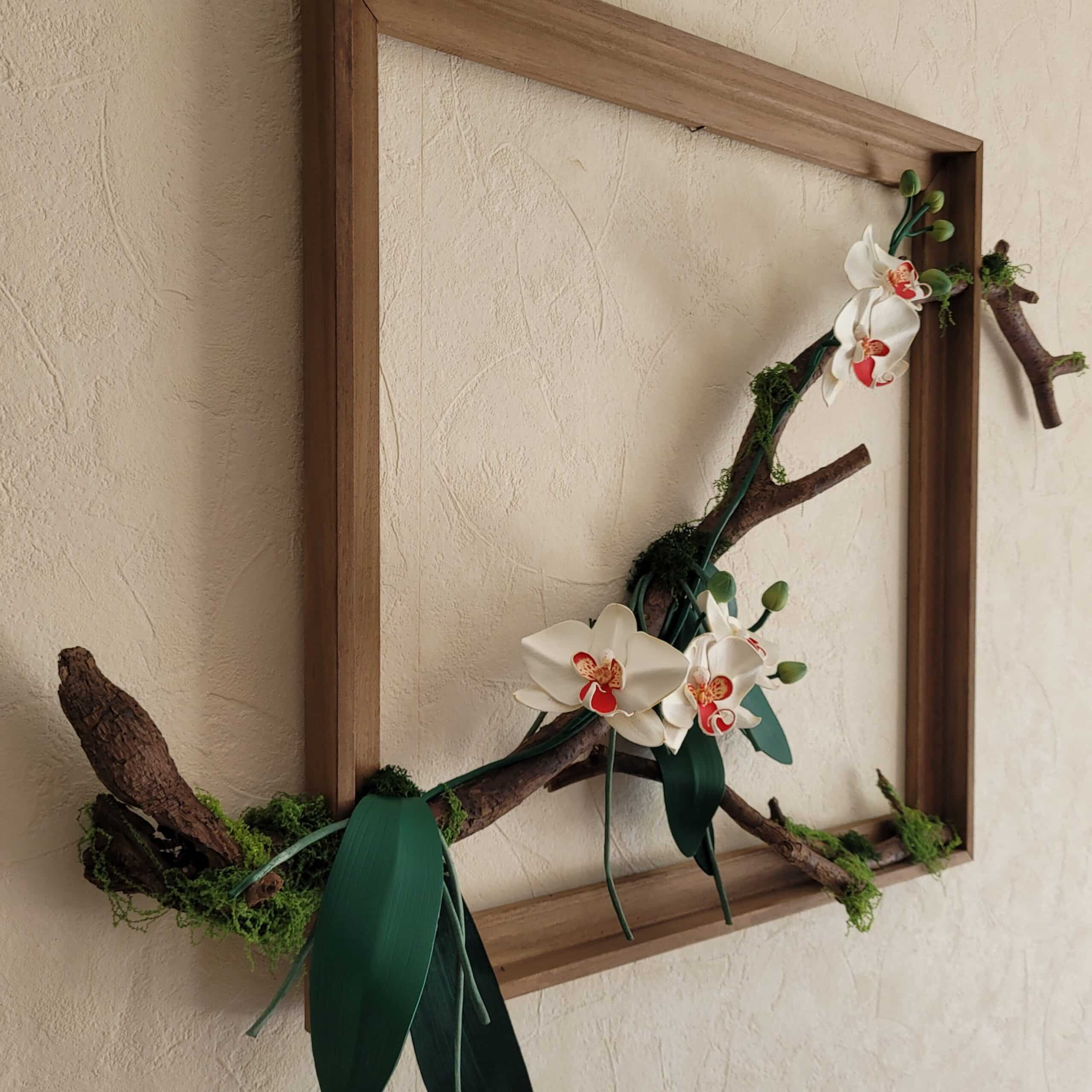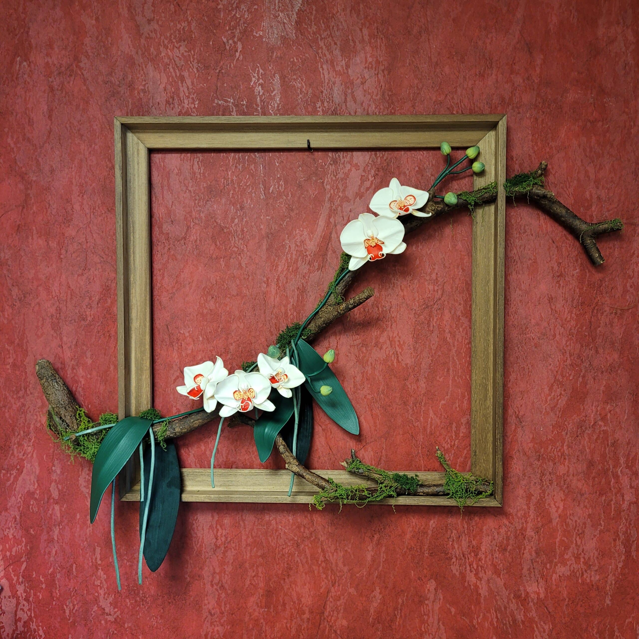 Orchidées en cuir d’agneau blanc, peintes en acrylique fuchsia et jaune