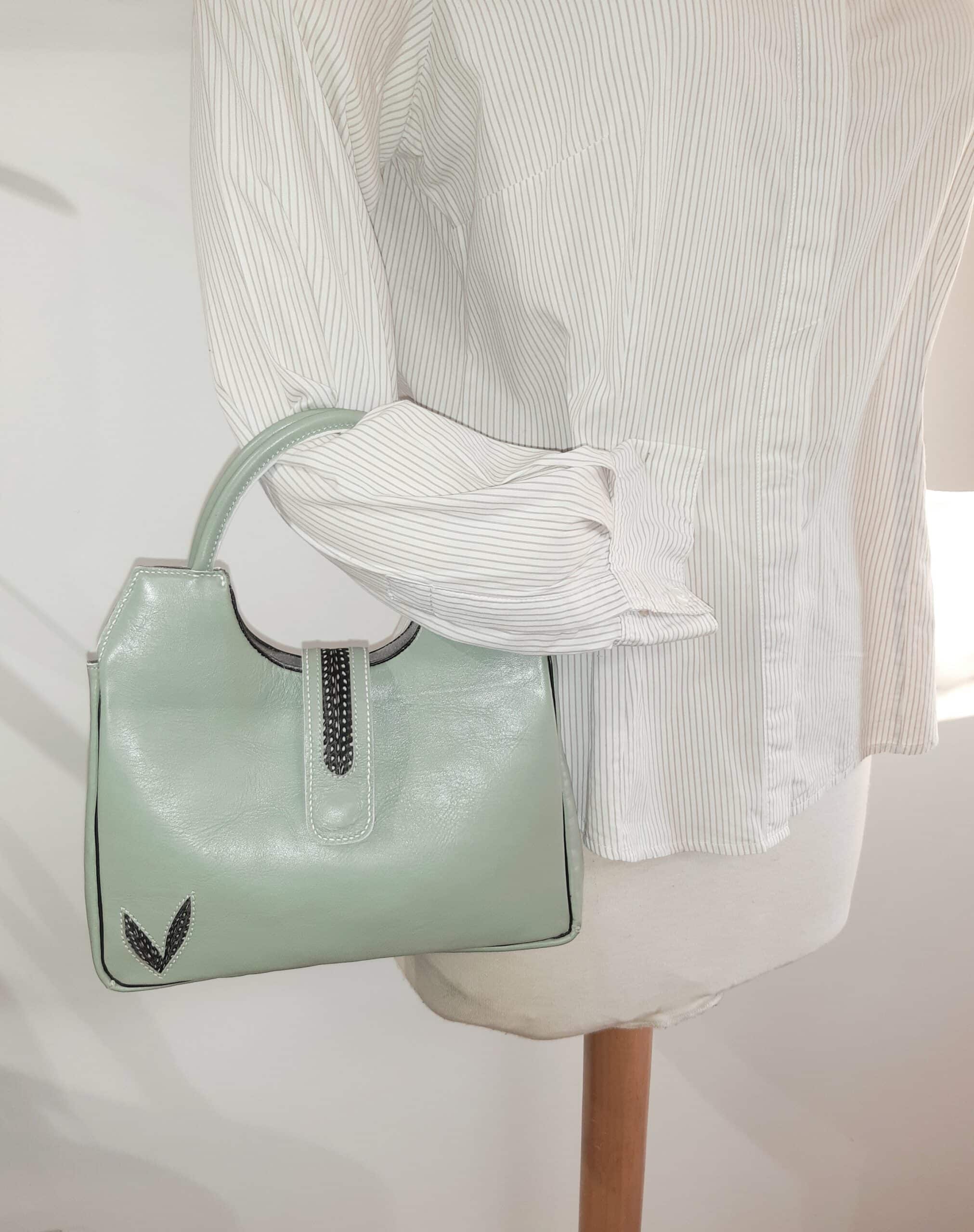 Sac à main en cuir de veau couleur vert amande.